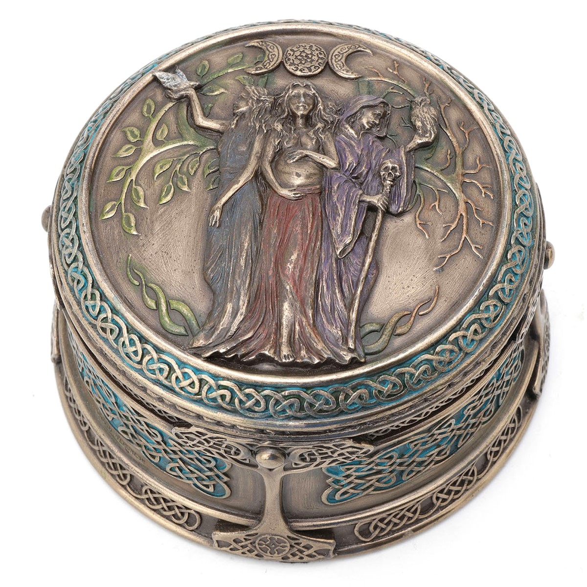 Caja con grabado de la Triple Diosa en bronce